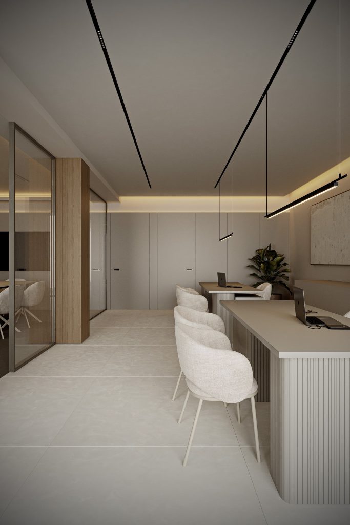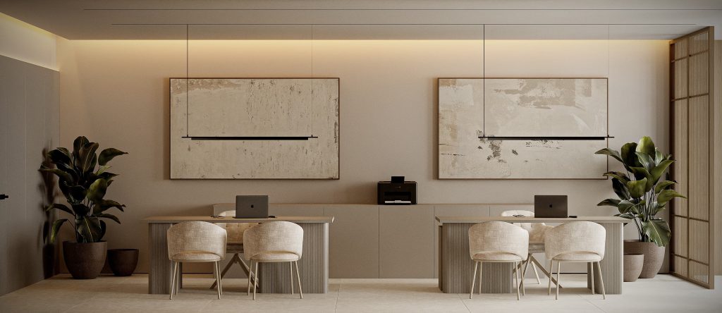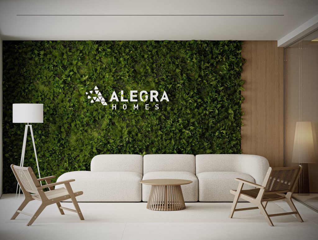 Las oficinas de Alegra Homes han sido diseñadas para transmitir los valores de la marca: cercanía, profesionalidad y diseño contemporáneo. Desde la zona de recepción, con su jardín vertical y mobiliario orgánico, hasta las salas de reuniones y espacios de trabajo, cada rincón está pensado para favorecer el bienestar, la concentración y la atención personalizada al cliente. La paleta neutra, los materiales naturales y la iluminación cálida refuerzan una atmósfera profesional y serena que invita a crear, dialogar y construir proyectos con sentido.